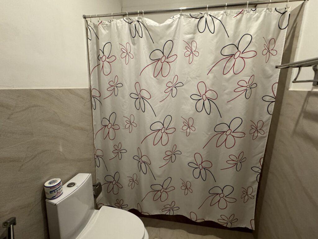シャワーカーテンを少し変えるだけでも雰囲気がかなり変わるので、変えたらどうでしょう?と提案しました。