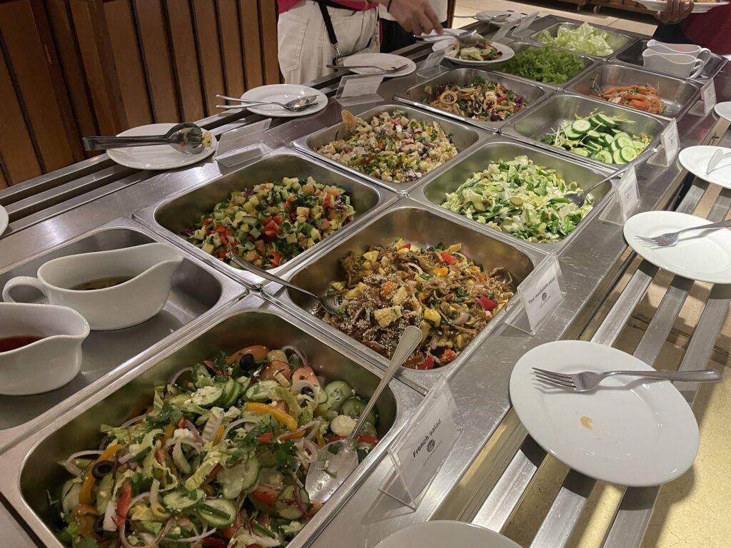 夕食、朝食はビュッフェスタイル。品数が極端に多くはありませんが、どれもおいしい料理でびっくりしました。