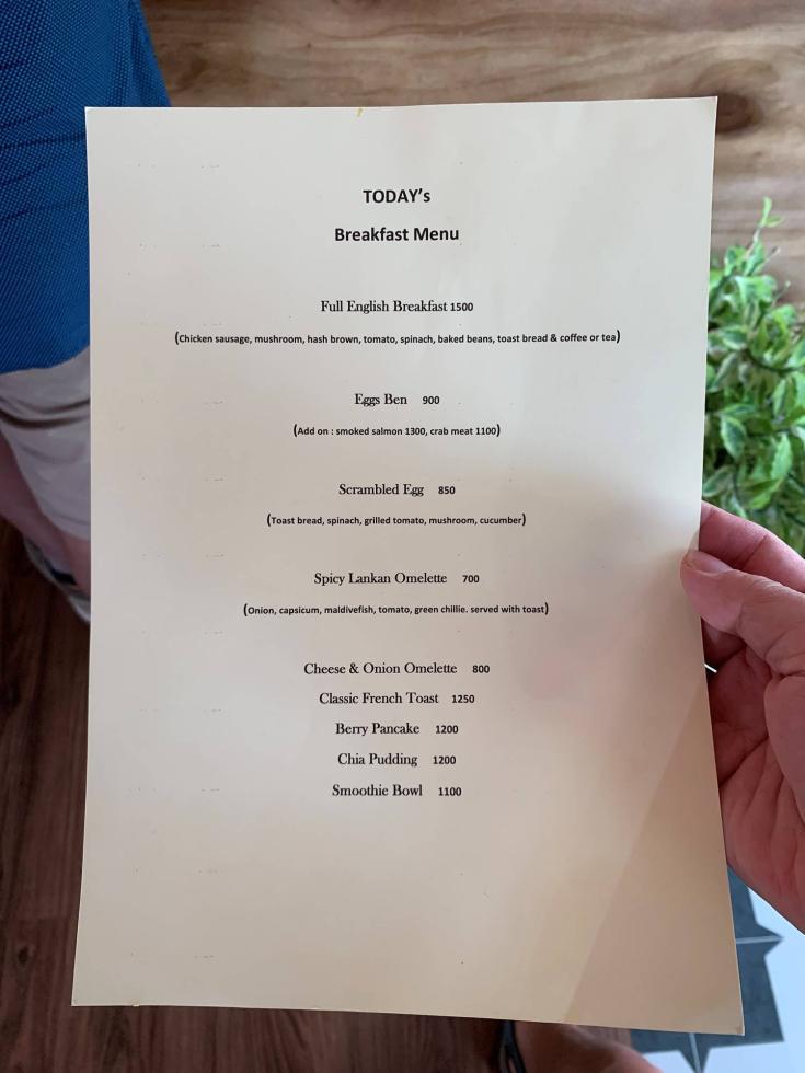こちらの朝食メニューからスリランカのスパイシーオムレツを注文しました。