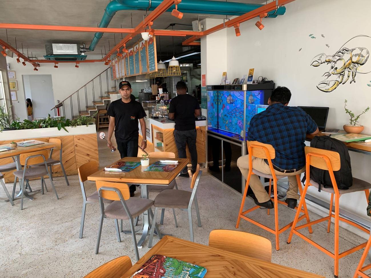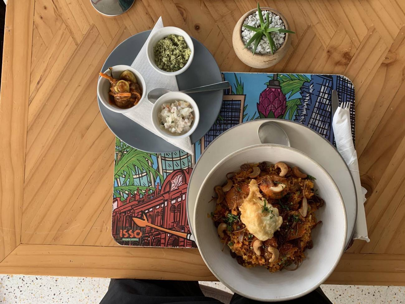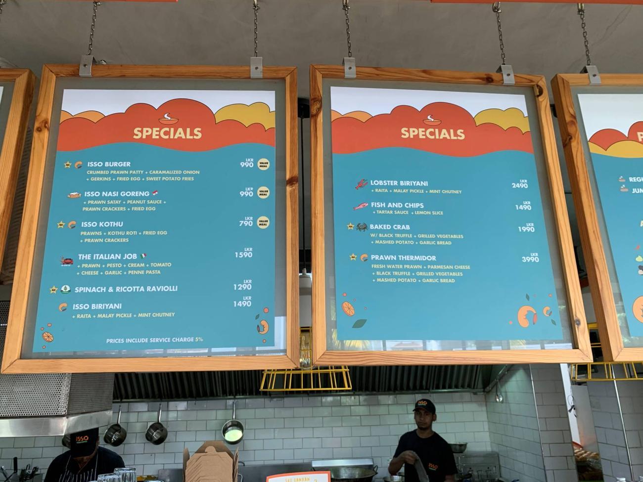 ISSOはシンハラ語でエビの意味。エビを専門とするおしゃれなファーストフード店のようなシーフードレストラン。