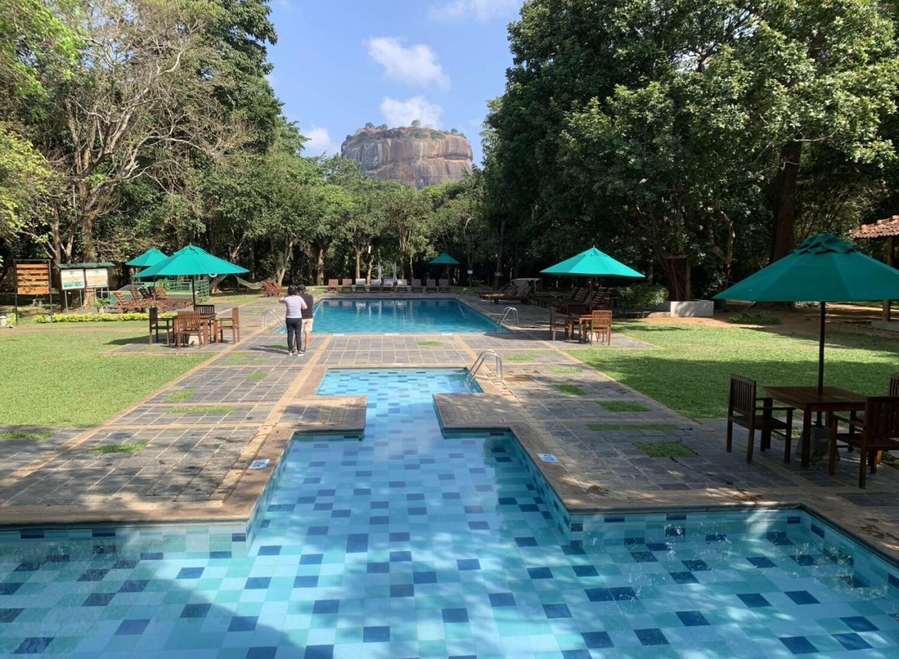 さらにプールサイドは世界遺産のシーギリヤロックが「どーーん!」と見える絶景ポイント。